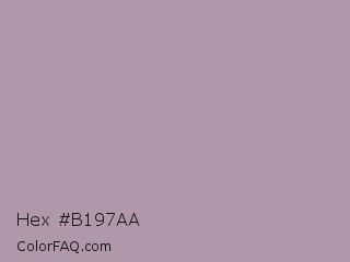 Hex #b197aa Color is a light magenta color and the nearest color is Lilac Luster #ae98aa. Hex code #b197aa and RGB value is rgb(177,151,170). In RGB color space, this color is composed of 69% red, 59% green, 67% blue, In CMYK color space, this color is composed of 0% cyan, 15% magenta, 4% yellow , 31% black , In HSL color space, this color has a hue angle of 316° , 14% saturation and 64% lightness.