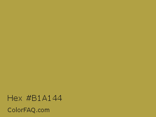 Hex #b1a144 Color is a normal yellow color and the nearest color is Brass #b5a642. Hex code #b1a144 and RGB value is rgb(177,161,68). In RGB color space, this color is composed of 69% red, 63% green, 27% blue, In CMYK color space, this color is composed of 0% cyan, 9% magenta, 62% yellow , 31% black , In HSL color space, this color has a hue angle of 51° , 44% saturation and 48% lightness.