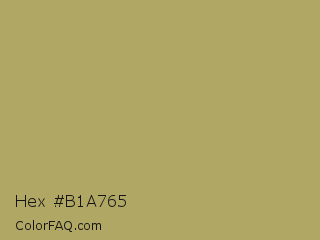 Hex #b1a765 Color is a normal yellow color and the nearest color is Husk #b7a458. Hex code #b1a765 and RGB value is rgb(177,167,101). In RGB color space, this color is composed of 69% red, 65% green, 40% blue, In CMYK color space, this color is composed of 0% cyan, 6% magenta, 43% yellow , 31% black , In HSL color space, this color has a hue angle of 52° , 33% saturation and 55% lightness.
