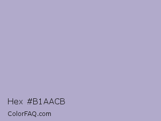 Hex #b1aacb Color is a light indigo color and the nearest color is Logan #aaa9cd. Hex code #b1aacb and RGB value is rgb(177,170,203). In RGB color space, this color is composed of 69% red, 67% green, 80% blue, In CMYK color space, this color is composed of 13% cyan, 16% magenta, 0% yellow , 20% black , In HSL color space, this color has a hue angle of 253° , 24% saturation and 73% lightness.