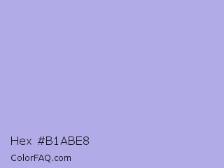 Hex #b1abe8 Color is a light indigo color and the nearest color is Maximum Blue Purple #acace6. Hex code #b1abe8 and RGB value is rgb(177,171,232). In RGB color space, this color is composed of 69% red, 67% green, 91% blue, In CMYK color space, this color is composed of 24% cyan, 26% magenta, 0% yellow , 9% black , In HSL color space, this color has a hue angle of 246° , 57% saturation and 79% lightness.