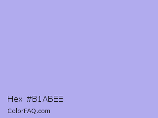 Hex #b1abee Color is a light indigo color and the nearest color is Maximum Blue Purple #acace6. Hex code #b1abee and RGB value is rgb(177,171,238). In RGB color space, this color is composed of 69% red, 67% green, 93% blue, In CMYK color space, this color is composed of 26% cyan, 28% magenta, 0% yellow , 7% black , In HSL color space, this color has a hue angle of 245° , 66% saturation and 80% lightness.