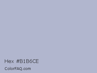 Hex #b1b6ce Color is a light blue color and the nearest color is Casper #adbed1. Hex code #b1b6ce and RGB value is rgb(177,182,206). In RGB color space, this color is composed of 69% red, 71% green, 81% blue, In CMYK color space, this color is composed of 14% cyan, 12% magenta, 0% yellow , 19% black , In HSL color space, this color has a hue angle of 230° , 23% saturation and 75% lightness.