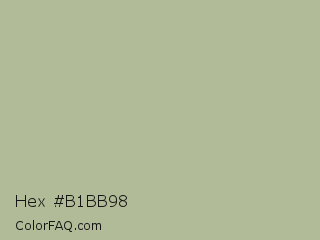 Hex #b1bb98 Color is a light lime color and the nearest color is Laurel Green #a9ba9d. Hex code #b1bb98 and RGB value is rgb(177,187,152). In RGB color space, this color is composed of 69% red, 73% green, 60% blue, In CMYK color space, this color is composed of 5% cyan, 0% magenta, 19% yellow , 27% black , In HSL color space, this color has a hue angle of 77° , 20% saturation and 66% lightness.
