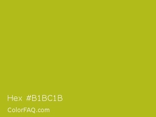 Hex #b1bc1b Color is a normal yellow color and the nearest color is Acid Green #b0bf1a. Hex code #b1bc1b and RGB value is rgb(177,188,27). In RGB color space, this color is composed of 69% red, 74% green, 11% blue, In CMYK color space, this color is composed of 6% cyan, 0% magenta, 86% yellow , 26% black , In HSL color space, this color has a hue angle of 64° , 75% saturation and 42% lightness.