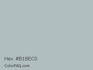 Hex #b1bec0 Color is a light cyan color and the nearest color is Tower Gray #a9bdbf. Hex code #b1bec0 and RGB value is rgb(177,190,192). In RGB color space, this color is composed of 69% red, 75% green, 75% blue, In CMYK color space, this color is composed of 8% cyan, 1% magenta, 0% yellow , 25% black , In HSL color space, this color has a hue angle of 188° , 11% saturation and 72% lightness.
