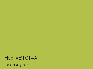 Hex #b1c14a Color is a normal yellow color and the nearest color is Celery #b8c25d. Hex code #b1c14a and RGB value is rgb(177,193,74). In RGB color space, this color is composed of 69% red, 76% green, 29% blue, In CMYK color space, this color is composed of 8% cyan, 0% magenta, 62% yellow , 24% black , In HSL color space, this color has a hue angle of 68° , 49% saturation and 52% lightness.