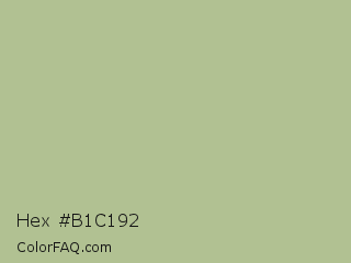Hex #b1c192 Color is a light green color and the nearest color is Swamp Green #acb78e. Hex code #b1c192 and RGB value is rgb(177,193,146). In RGB color space, this color is composed of 69% red, 76% green, 57% blue, In CMYK color space, this color is composed of 8% cyan, 0% magenta, 24% yellow , 24% black , In HSL color space, this color has a hue angle of 80° , 27% saturation and 66% lightness.