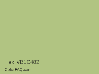 Hex #b1c482 Color is a light lime color and the nearest color is Sage #bcb88a. Hex code #b1c482 and RGB value is rgb(177,196,130). In RGB color space, this color is composed of 69% red, 77% green, 51% blue, In CMYK color space, this color is composed of 10% cyan, 0% magenta, 34% yellow , 23% black , In HSL color space, this color has a hue angle of 77° , 36% saturation and 64% lightness.