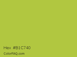 Hex #b1c740 Color is a normal yellow color and the nearest color is Android Green #a4c639. Hex code #b1c740 and RGB value is rgb(177,199,64). In RGB color space, this color is composed of 69% red, 78% green, 25% blue, In CMYK color space, this color is composed of 11% cyan, 0% magenta, 68% yellow , 22% black , In HSL color space, this color has a hue angle of 70° , 55% saturation and 52% lightness.