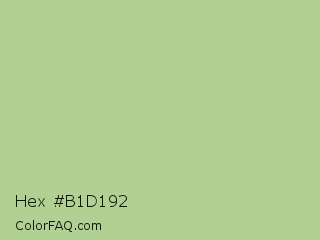 Hex #b1d192 Color is a light green color and the nearest color is Feijoa #9fdd8c. Hex code #b1d192 and RGB value is rgb(177,209,146). In RGB color space, this color is composed of 69% red, 82% green, 57% blue, In CMYK color space, this color is composed of 15% cyan, 0% magenta, 30% yellow , 18% black , In HSL color space, this color has a hue angle of 90° , 41% saturation and 70% lightness.