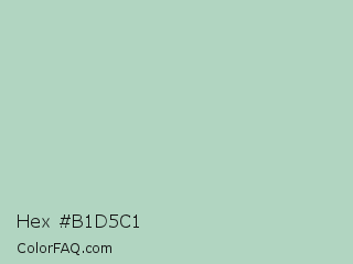 Hex #b1d5c1 Color is a light green color and the nearest color is Gum Leaf #b6d3bf. Hex code #b1d5c1 and RGB value is rgb(177,213,193). In RGB color space, this color is composed of 69% red, 84% green, 76% blue, In CMYK color space, this color is composed of 17% cyan, 0% magenta, 9% yellow , 16% black , In HSL color space, this color has a hue angle of 147° , 30% saturation and 76% lightness.