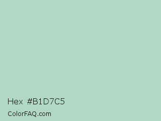 Hex #b1d7c5 Color is a light green color and the nearest color is Gum Leaf #b6d3bf. Hex code #b1d7c5 and RGB value is rgb(177,215,197). In RGB color space, this color is composed of 69% red, 84% green, 77% blue, In CMYK color space, this color is composed of 18% cyan, 0% magenta, 8% yellow , 16% black , In HSL color space, this color has a hue angle of 152° , 32% saturation and 77% lightness.