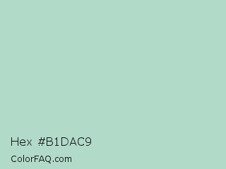 Hex #b1dac9 Color is a light green color and the nearest color is Jet Stream #b5d2ce. Hex code #b1dac9 and RGB value is rgb(177,218,201). In RGB color space, this color is composed of 69% red, 85% green, 79% blue, In CMYK color space, this color is composed of 19% cyan, 0% magenta, 8% yellow , 15% black , In HSL color space, this color has a hue angle of 155° , 36% saturation and 77% lightness.