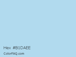Hex #b1daee Color is a very light blue color and the nearest color is Light Blue #add8e6. Hex code #b1daee and RGB value is rgb(177,218,238). In RGB color space, this color is composed of 69% red, 85% green, 93% blue, In CMYK color space, this color is composed of 26% cyan, 8% magenta, 0% yellow , 7% black , In HSL color space, this color has a hue angle of 200° , 64% saturation and 81% lightness.