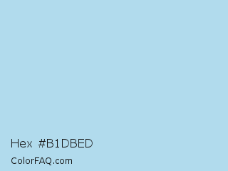 Hex #b1dbed Color is a very light blue color and the nearest color is Light Blue #add8e6. Hex code #b1dbed and RGB value is rgb(177,219,237). In RGB color space, this color is composed of 69% red, 86% green, 93% blue, In CMYK color space, this color is composed of 25% cyan, 8% magenta, 0% yellow , 7% black , In HSL color space, this color has a hue angle of 198° , 63% saturation and 81% lightness.