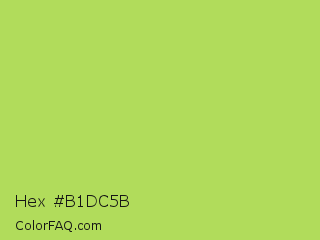 Hex #b1dc5b Color is a light green color and the nearest color is June Bud #bdda57. Hex code #b1dc5b and RGB value is rgb(177,220,91). In RGB color space, this color is composed of 69% red, 86% green, 36% blue, In CMYK color space, this color is composed of 20% cyan, 0% magenta, 59% yellow , 14% black , In HSL color space, this color has a hue angle of 80° , 65% saturation and 61% lightness.