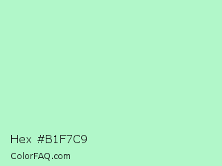 Hex #b1f7c9 Color is a very light green color and the nearest color is Magic Mint #aaf0d1. Hex code #b1f7c9 and RGB value is rgb(177,247,201). In RGB color space, this color is composed of 69% red, 97% green, 79% blue, In CMYK color space, this color is composed of 28% cyan, 0% magenta, 19% yellow , 3% black , In HSL color space, this color has a hue angle of 141° , 81% saturation and 83% lightness.