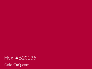 Hex #b20136 Color is a normal rose color and the nearest color is Shiraz #b20931. Hex code #b20136 and RGB value is rgb(178,1,54). In RGB color space, this color is composed of 70% red, 0% green, 21% blue, In CMYK color space, this color is composed of 0% cyan, 99% magenta, 70% yellow , 30% black , In HSL color space, this color has a hue angle of 342° , 99% saturation and 35% lightness.