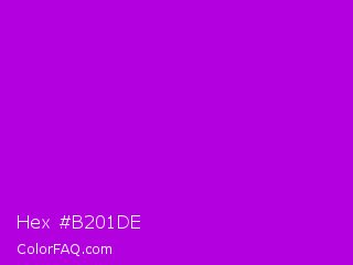 Hex #b201de Color is a normal purple color and the nearest color is Vivid Mulberry #b80ce3. Hex code #b201de and RGB value is rgb(178,1,222). In RGB color space, this color is composed of 70% red, 0% green, 87% blue, In CMYK color space, this color is composed of 20% cyan, 100% magenta, 0% yellow , 13% black , In HSL color space, this color has a hue angle of 288° , 99% saturation and 44% lightness.