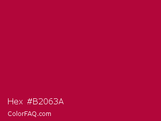 Hex #b2063a Color is a normal rose color and the nearest color is Shiraz #b20931. Hex code #b2063a and RGB value is rgb(178,6,58). In RGB color space, this color is composed of 70% red, 2% green, 23% blue, In CMYK color space, this color is composed of 0% cyan, 97% magenta, 67% yellow , 30% black , In HSL color space, this color has a hue angle of 342° , 93% saturation and 36% lightness.