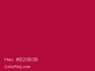 Hex #b20b3b Color is a normal rose color and the nearest color is Shiraz #b20931. Hex code #b20b3b and RGB value is rgb(178,11,59). In RGB color space, this color is composed of 70% red, 4% green, 23% blue, In CMYK color space, this color is composed of 0% cyan, 94% magenta, 67% yellow , 30% black , In HSL color space, this color has a hue angle of 343° , 88% saturation and 37% lightness.