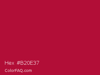 Hex #b20e37 Color is a normal red color and the nearest color is Shiraz #b20931. Hex code #b20e37 and RGB value is rgb(178,14,55). In RGB color space, this color is composed of 70% red, 5% green, 22% blue, In CMYK color space, this color is composed of 0% cyan, 92% magenta, 69% yellow , 30% black , In HSL color space, this color has a hue angle of 345° , 85% saturation and 38% lightness.
