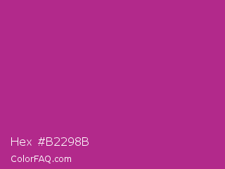 Hex #b2298b Color is a normal magenta color and the nearest color is Fandango #b53389. Hex code #b2298b and RGB value is rgb(178,41,139). In RGB color space, this color is composed of 70% red, 16% green, 55% blue, In CMYK color space, this color is composed of 0% cyan, 77% magenta, 22% yellow , 30% black , In HSL color space, this color has a hue angle of 317° , 63% saturation and 43% lightness.