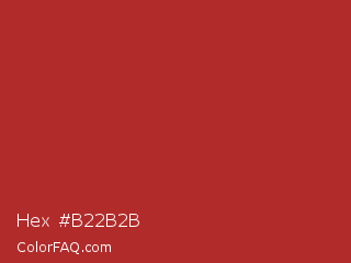 Hex #b22b2b Color is a normal red color and the nearest color is Tall Poppy #b32d29. Hex code #b22b2b and RGB value is rgb(178,43,43). In RGB color space, this color is composed of 70% red, 17% green, 17% blue, In CMYK color space, this color is composed of 0% cyan, 76% magenta, 76% yellow , 30% black , In HSL color space, this color has a hue angle of 0° , 61% saturation and 43% lightness.