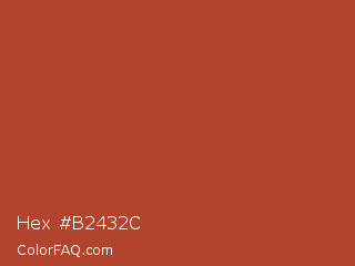 Hex #b2432c Color is a normal red color and the nearest color is Medium Carmine #af4035. Hex code #b2432c and RGB value is rgb(178,67,44). In RGB color space, this color is composed of 70% red, 26% green, 17% blue, In CMYK color space, this color is composed of 0% cyan, 62% magenta, 75% yellow , 30% black , In HSL color space, this color has a hue angle of 10° , 60% saturation and 44% lightness.