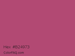 Hex #b24973 Color is a normal rose color and the nearest color is Raspberry Rose #b3446c. Hex code #b24973 and RGB value is rgb(178,73,115). In RGB color space, this color is composed of 70% red, 29% green, 45% blue, In CMYK color space, this color is composed of 0% cyan, 59% magenta, 35% yellow , 30% black , In HSL color space, this color has a hue angle of 336° , 42% saturation and 49% lightness.