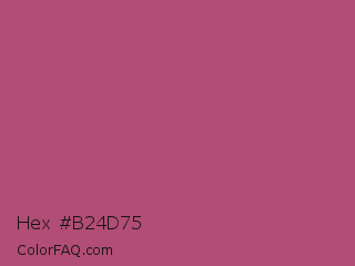 Hex #b24d75 Color is a normal rose color and the nearest color is Cadillac #b04c6a. Hex code #b24d75 and RGB value is rgb(178,77,117). In RGB color space, this color is composed of 70% red, 30% green, 46% blue, In CMYK color space, this color is composed of 0% cyan, 57% magenta, 34% yellow , 30% black , In HSL color space, this color has a hue angle of 336° , 40% saturation and 50% lightness.
