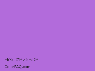 Hex #b26bdb Color is a light purple color and the nearest color is Rich Lilac #b666d2. Hex code #b26bdb and RGB value is rgb(178,107,219). In RGB color space, this color is composed of 70% red, 42% green, 86% blue, In CMYK color space, this color is composed of 19% cyan, 51% magenta, 0% yellow , 14% black , In HSL color space, this color has a hue angle of 278° , 61% saturation and 64% lightness.