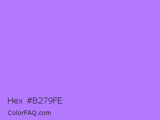 Hex #b279fe Color is a light violet color and the nearest color is Lavender #b57edc. Hex code #b279fe and RGB value is rgb(178,121,254). In RGB color space, this color is composed of 70% red, 47% green, 100% blue, In CMYK color space, this color is composed of 30% cyan, 52% magenta, 0% yellow , 0% black , In HSL color space, this color has a hue angle of 266° , 99% saturation and 74% lightness.