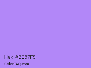 Hex #b287f8 Color is a light violet color and the nearest color is Bright Lavender #bf94e4. Hex code #b287f8 and RGB value is rgb(178,135,248). In RGB color space, this color is composed of 70% red, 53% green, 97% blue, In CMYK color space, this color is composed of 28% cyan, 46% magenta, 0% yellow , 3% black , In HSL color space, this color has a hue angle of 263° , 89% saturation and 75% lightness.