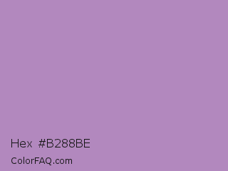 Hex #b288be Color is a light purple color and the nearest color is African Violet #b284be. Hex code #b288be and RGB value is rgb(178,136,190). In RGB color space, this color is composed of 70% red, 53% green, 75% blue, In CMYK color space, this color is composed of 6% cyan, 28% magenta, 0% yellow , 25% black , In HSL color space, this color has a hue angle of 287° , 29% saturation and 64% lightness.
