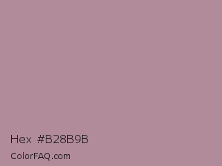 Hex #b28b9b Color is a light rose color and the nearest color is English Lavender #b48395. Hex code #b28b9b and RGB value is rgb(178,139,155). In RGB color space, this color is composed of 70% red, 55% green, 61% blue, In CMYK color space, this color is composed of 0% cyan, 22% magenta, 13% yellow , 30% black , In HSL color space, this color has a hue angle of 335° , 20% saturation and 62% lightness.
