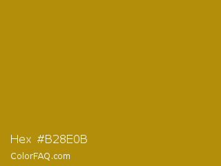 Hex #b28e0b Color is a normal yellow color and the nearest color is Dark Goldenrod #b8860b. Hex code #b28e0b and RGB value is rgb(178,142,11). In RGB color space, this color is composed of 70% red, 56% green, 4% blue, In CMYK color space, this color is composed of 0% cyan, 20% magenta, 94% yellow , 30% black , In HSL color space, this color has a hue angle of 47° , 88% saturation and 37% lightness.