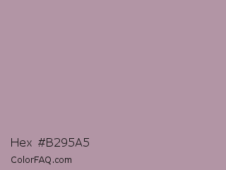 Hex #b295a5 Color is a light magenta color and the nearest color is Lilac Luster #ae98aa. Hex code #b295a5 and RGB value is rgb(178,149,165). In RGB color space, this color is composed of 70% red, 58% green, 65% blue, In CMYK color space, this color is composed of 0% cyan, 16% magenta, 7% yellow , 30% black , In HSL color space, this color has a hue angle of 327° , 16% saturation and 64% lightness.