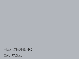 Hex #b2b6bc Color is a light blue color and the nearest color is Bombay #afb1b8. Hex code #b2b6bc and RGB value is rgb(178,182,188). In RGB color space, this color is composed of 70% red, 71% green, 74% blue, In CMYK color space, this color is composed of 5% cyan, 3% magenta, 0% yellow , 26% black , In HSL color space, this color has a hue angle of 216° , 7% saturation and 72% lightness.