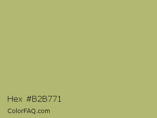 Hex #b2b771 Color is a normal yellow color and the nearest color is Gimblet #b8b56a. Hex code #b2b771 and RGB value is rgb(178,183,113). In RGB color space, this color is composed of 70% red, 72% green, 44% blue, In CMYK color space, this color is composed of 3% cyan, 0% magenta, 38% yellow , 28% black , In HSL color space, this color has a hue angle of 64° , 33% saturation and 58% lightness.