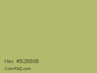 Hex #b2bb6b Color is a normal yellow color and the nearest color is Gimblet #b8b56a. Hex code #b2bb6b and RGB value is rgb(178,187,107). In RGB color space, this color is composed of 70% red, 73% green, 42% blue, In CMYK color space, this color is composed of 5% cyan, 0% magenta, 43% yellow , 27% black , In HSL color space, this color has a hue angle of 67° , 37% saturation and 58% lightness.