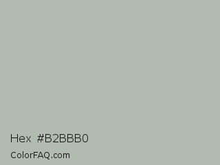 Hex #b2bbb0 Color is a light green color and the nearest color is Ash Gray #b2beb5. Hex code #b2bbb0 and RGB value is rgb(178,187,176). In RGB color space, this color is composed of 70% red, 73% green, 69% blue, In CMYK color space, this color is composed of 5% cyan, 0% magenta, 6% yellow , 27% black , In HSL color space, this color has a hue angle of 109° , 7% saturation and 71% lightness.