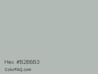 Hex #b2bbb3 Color is a light green color and the nearest color is Ash Gray #b2beb5. Hex code #b2bbb3 and RGB value is rgb(178,187,179). In RGB color space, this color is composed of 70% red, 73% green, 70% blue, In CMYK color space, this color is composed of 5% cyan, 0% magenta, 4% yellow , 27% black , In HSL color space, this color has a hue angle of 127° , 6% saturation and 72% lightness.