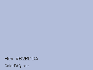 Hex #b2bdda Color is a light blue color and the nearest color is Pigeon Post #afbdd9. Hex code #b2bdda and RGB value is rgb(178,189,218). In RGB color space, this color is composed of 70% red, 74% green, 85% blue, In CMYK color space, this color is composed of 18% cyan, 13% magenta, 0% yellow , 15% black , In HSL color space, this color has a hue angle of 224° , 35% saturation and 78% lightness.