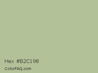 Hex #b2c198 Color is a light green color and the nearest color is Laurel Green #a9ba9d. Hex code #b2c198 and RGB value is rgb(178,193,152). In RGB color space, this color is composed of 70% red, 76% green, 60% blue, In CMYK color space, this color is composed of 8% cyan, 0% magenta, 21% yellow , 24% black , In HSL color space, this color has a hue angle of 82° , 25% saturation and 68% lightness.