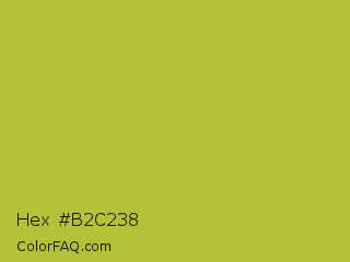 Hex #b2c238 Color is a normal yellow color and the nearest color is Android Green #a4c639. Hex code #b2c238 and RGB value is rgb(178,194,56). In RGB color space, this color is composed of 70% red, 76% green, 22% blue, In CMYK color space, this color is composed of 8% cyan, 0% magenta, 71% yellow , 24% black , In HSL color space, this color has a hue angle of 67° , 55% saturation and 49% lightness.
