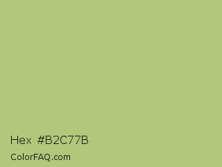 Hex #b2c77b Color is a light lime color and the nearest color is Wild Willow #b9c46a. Hex code #b2c77b and RGB value is rgb(178,199,123). In RGB color space, this color is composed of 70% red, 78% green, 48% blue, In CMYK color space, this color is composed of 11% cyan, 0% magenta, 38% yellow , 22% black , In HSL color space, this color has a hue angle of 77° , 40% saturation and 63% lightness.