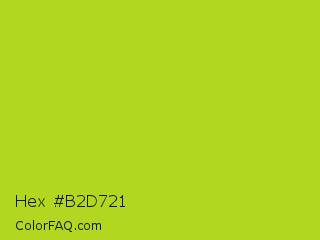 Hex #b2d721 Color is a normal lime color and the nearest color is Inch Worm #b0e313. Hex code #b2d721 and RGB value is rgb(178,215,33). In RGB color space, this color is composed of 70% red, 84% green, 13% blue, In CMYK color space, this color is composed of 17% cyan, 0% magenta, 85% yellow , 16% black , In HSL color space, this color has a hue angle of 72° , 73% saturation and 49% lightness.