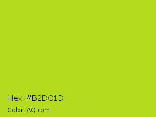 Hex #b2dc1d Color is a normal lime color and the nearest color is Inch Worm #b0e313. Hex code #b2dc1d and RGB value is rgb(178,220,29). In RGB color space, this color is composed of 70% red, 86% green, 11% blue, In CMYK color space, this color is composed of 19% cyan, 0% magenta, 87% yellow , 14% black , In HSL color space, this color has a hue angle of 73° , 77% saturation and 49% lightness.